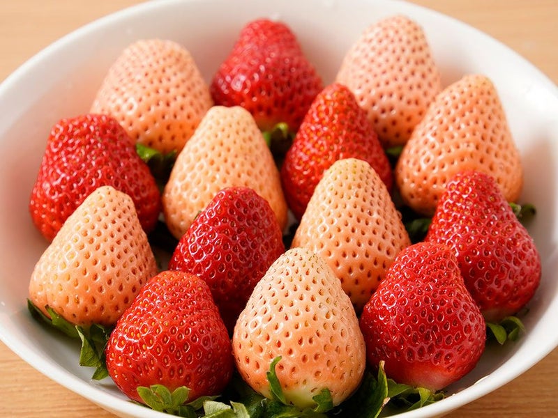 白いちごには、初恋の香り、桃薫といった品種があります。どの白いちごも酸味は控えめで独特の優しい香りがあります。淡雪いちごはその中でも甘味が強い品種です。
