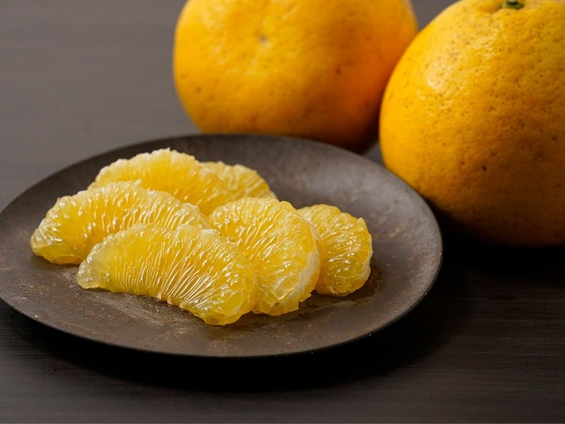 右田柑橘は河内晩柑で有機JAS認証を取得。河内晩柑は12~15か月も樹上で実をならせるので、化学農薬を使わないととてもリスクが高い。右田さんは長い時間手間をかけて栽培されています。果汁はとても甘く、右田柑橘の河内晩柑は特に酸味がスッキリ。苦味がなくきれいな味わいです。