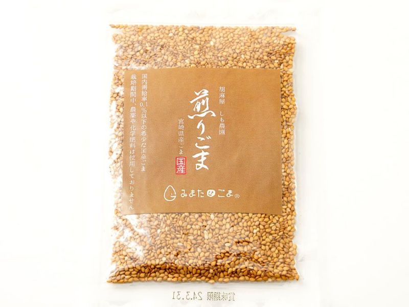 宮崎県三股町でつくられた「みまたんごま」。希少な国産の栽培期間中農薬・化学肥料不使用の金ごまです。