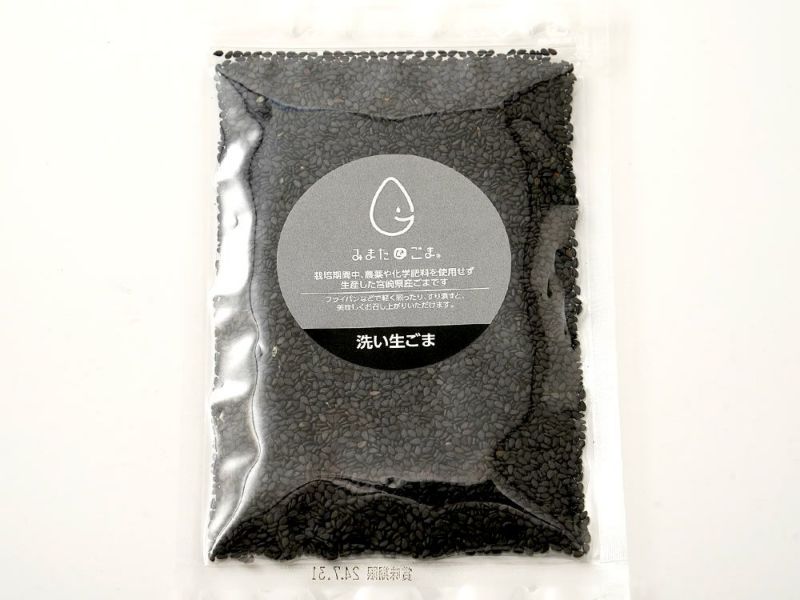 宮崎県三股町でつくられた「みまたんごま」。希少な国産の栽培期間中農薬・化学肥料不使用の洗い黒ごまです。