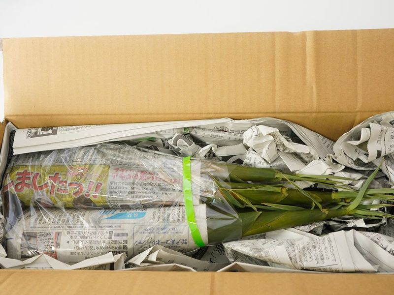 朝採りのたけのこをその日の夕方に冷蔵便で発送します。