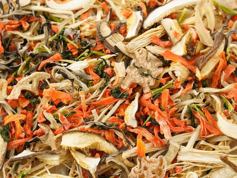 原木栽培しいたけ、えのき、きくらげの乾燥きのこに、ゴボウ、人参、大根葉などの乾燥野菜をミックス。味噌汁、炊き込みご飯などに。