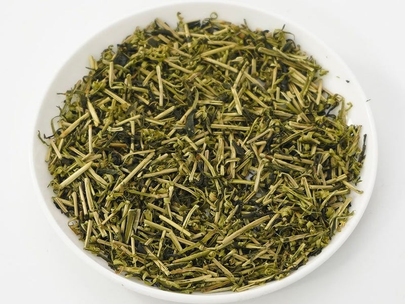茎の部分を集めたお茶で、茎茶、かりがね、棒茶とも呼ばれます。すっきりした甘みとより渋みの少ないマイルドな味です。