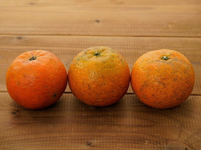 渡嘉敷さんは化学農薬を半分以下に減らして栽培しているため、見た目はとても悪いです。皮に傷がついていたり、黒点があります。