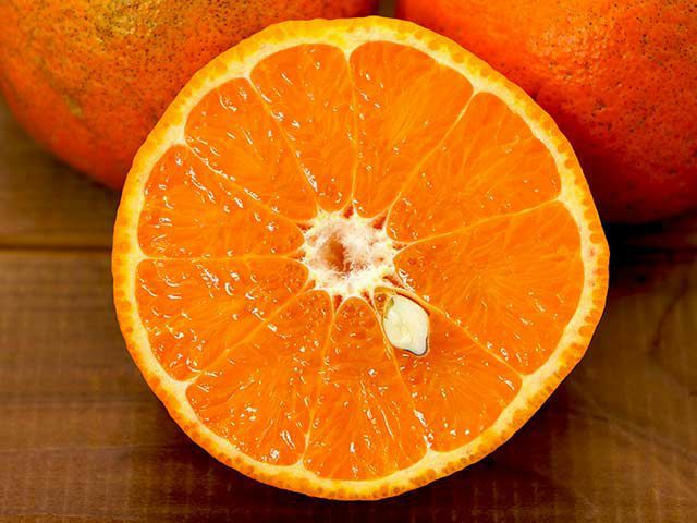 果皮はオレンジ色で、大きさはみかんと同じくらいか少し大きいくらいのサイズ。甘味がとても強く、酸味は控えめです。香りがオレンジのように華やかです。
