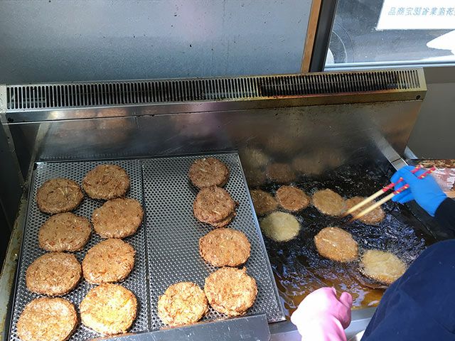 三好さんは自分の目で、新鮮な魚を見極めて仕入れ、頭、ウロコ、腹わたを手作業で除き、ミンチにしています。そのあと手で成型。一枚ずつ揚げています。ミンチは細かめで、舌触りは滑らか。骨、皮、身を丸ごとミンチにしているので、栄養が損なわれておらず健康的です。