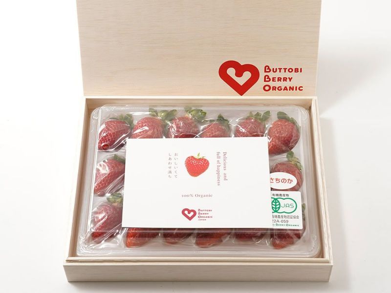 BUTTOBI BERRY ORGANIC・オーガニック苺【さちのか】桐箱入り中粒18粒(380g)
