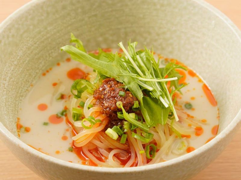 麺は岩手県産「ゆきちから」とじゃがいも澱粉による自家製生麺。もっちりした食感と自然な甘みが、豆乳スープのコクと抜群にマッチします。お好みでアボカドやナッツ、レモンを添えると、さらに深みある味わいに。健康を意識しながらも、満足感のある一杯です。