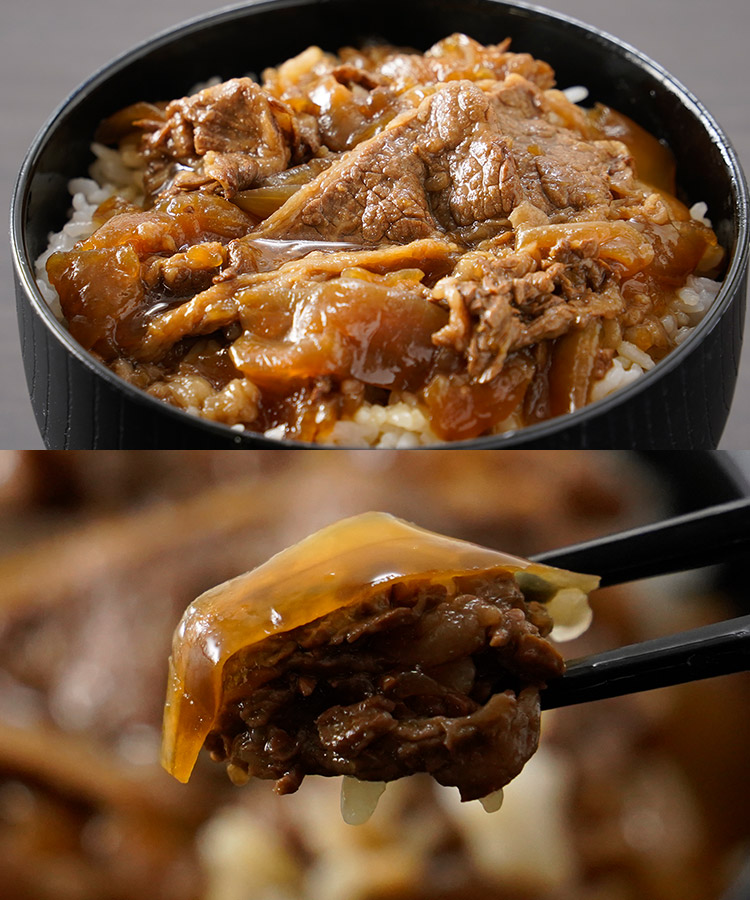 肉は一度湯でこぼしを行い、余分な脂や臭みを取り除くことで、上品で澄んだ味わいに仕上げています。さらに隠し味として山形高畠ワイナリーの赤ワインを加え、牛肉のコクを引き立てました。国産玉ねぎの甘味と米沢牛の旨味が溶け合い、ご飯にかけるだけで専門店のような牛丼が完成します。