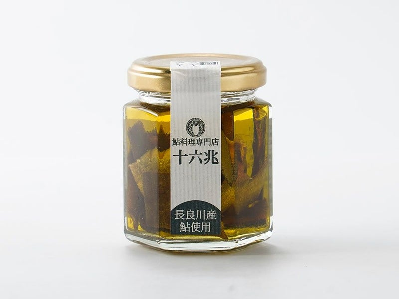 串を打ち、塩を振り、炭火で焼き上げる。鮎料理専門店「十六兆」の基本に忠実な塩焼きを、そのまま瓶に詰めた生ふりかけです。世界農業遺産・長良川の鮎を、大垣の地下水で育てた上質な個体のみを使用。焼き上げ後、一本ずつ手作業で骨と内臓を丁寧に取り除き、余計な調味を極力控えました。