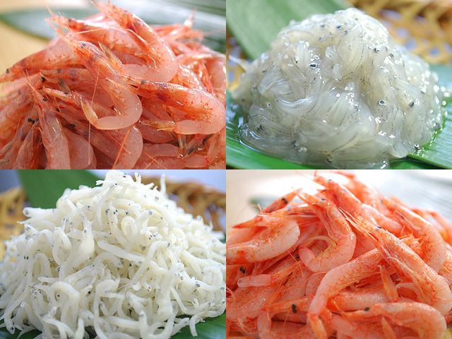 駿河湾産の生桜えび・釜ゆで桜えび・生しらす・釜ゆでしらすから2種をセットに。