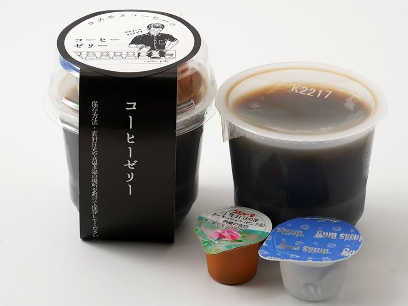 コーヒーマイスターの蒔田さんがこだわって焙煎した深煎りコーヒー豆をしようしたコーヒーゼリー。無糖で作られていて、スッキリとした後味で本格的な味わい。