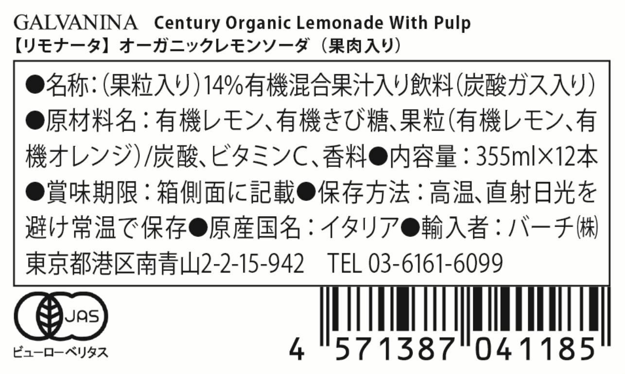 他の画像を見る お気に入り追加 GALVANINA Century【リモナータ】レモンソーダ(355ml)12本入り 販売期間 2022/04/01 9:00 〜 ¥ 6,998 税込 送料無料 日時指定不可 【注意】年末年始(12月下旬~1月上旬)配送ができません。年明け1月中旬より発送開始いたします。通常、3~7日ほどで発送します。 (1)