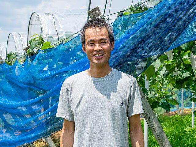 安藤農園の園長安藤宜孝さんは、東京の私立高校で12年間教師を勤められたあと、岡山県に移住。岡山県の就農支援制度を受けてぶどう農家として独立した異色の経歴を持ちます。園地は非常にきれいに整備され、ゼロから栽培を学ばれたとは思えないほど素晴らしいぶどうを作られています。
