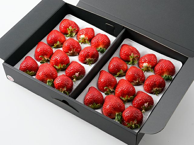 丁寧に一粒一粒収穫されたあまおうは、きれいにギフト箱に並べられて、お客様のもとへ発送されます。毎日、その日に収穫した苺しか発送いたしません。