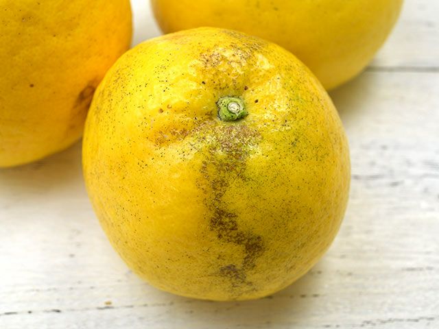 梅雨時を木成りで熟成させますので、風雨にさらされて外観は非常に汚くなってしまいますが、味と特徴でもある甘い果汁は申し分ありません。また、25年以上の古木が全体の9割をしめますので、皮が薄くむきやすいです。