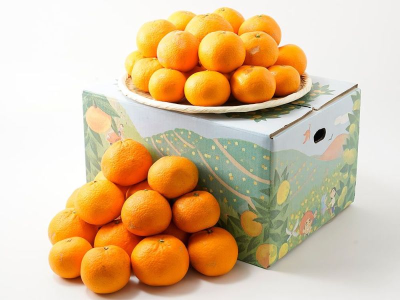 農園のコンセプトである「人とのつながりを大切にし、みかんで『笑顔・幸せ・感謝・未来』を創造し世界中に有田みかんを届けたい」という想いがデザインされている箱です。
