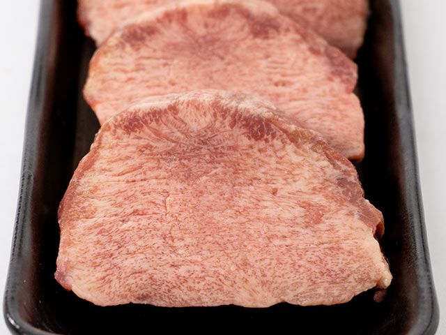 厚切りにできる部位は、牛たんの根元の部分だけ。牛たんは根元の部分に脂がのっていてやわらかく、先にいくほど赤身になってかたくなります。厚切りにしてもやわらかく美味しいのは根元部分だけです。