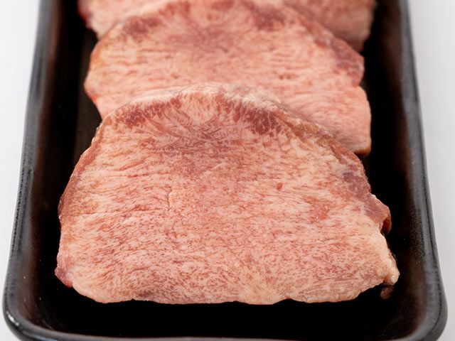 厚切りにできる部位は、牛たんの根元の部分だけ。牛たんは根元の部分に脂がのっていてやわらかく、先にいくほど赤身になってかたくなります。厚切りにしてもやわらかく美味しいのは根元部分だけです。