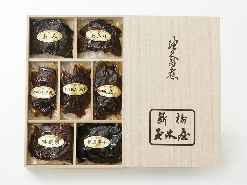江戸時代から続く佃煮の老舗新橋玉木屋。秘伝のタレで作り上げる伝統的な江戸前佃煮のセット。