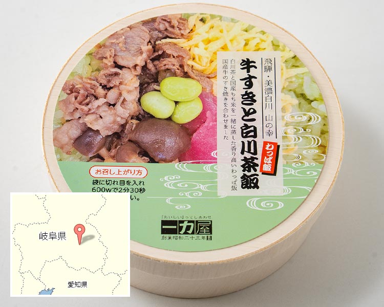 その茶飯の上にのせるのは、国産牛を使ったすき焼き。甘辛い味付けは控えめで、茶飯との一体感を重視。すべての工程を手作業で行い、冷凍でも味が損なわれないよう工夫されています。白川町の「白川茶を使用した新商品開発支援事業」から生まれた、地域性の高い一品です。