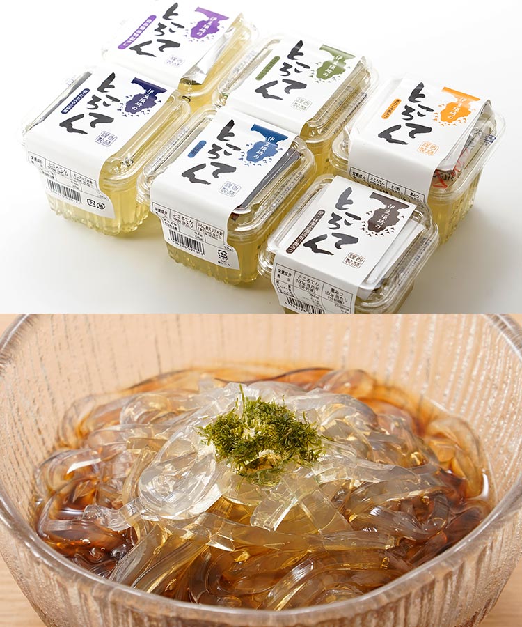 完成したところてんは、驚くほどの透明感を持ち、光にかざすと澄み切った美しさが際立ちます。最大の特徴は、蝶結びができるほどの強いコシと弾力。それでいて口に含めばなめらかで、のど越しは軽やか。噛むほどに広がるほのかな磯の香りが、伊豆の海そのものを感じさせます。