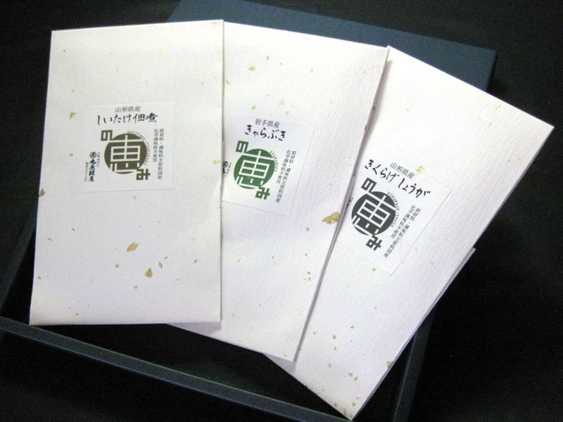 しいたけ佃煮、きゃらぶき、きくらげしょうがのセット。