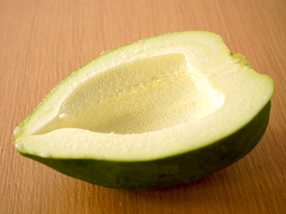 とても体によいフルーツ野菜で、果実を切ると乳液状の果汁がどんどん出てきますが、この果汁には美容と健康に効果的な成分がたっぷり。ポリフェノール・ビタミン類が豊富で、老化の原因とされる活性酸素を除去し免疫力を上げてくれます。酵素含有量が野菜の中で一番多く、タンパク質・糖質・脂質の三大栄養素を分解する酵素があり「酵素の王様」「メディカルフルーツ」とも呼ばれています。