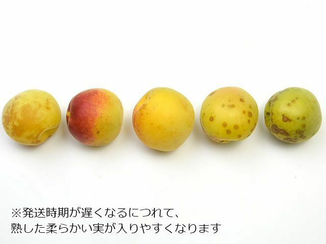 他の画像を見る お気に入り追加 あすなろファーム・小田原曽我の無農薬 黄熟梅【杉田】 販売期間外でお取り扱いできません ¥ 8,780 税込 〜 ¥ 税込 送料無料 産地直送 日時指定不可 【注意】6月上旬頃から発送開始予定です。黒点や傷が付いたものが数多く入ります。熟度を見極めて収穫しますので、見た目が青色のものも入ります。2008年から農薬、化学肥料不使用の畑で栽培したものです。 (1)