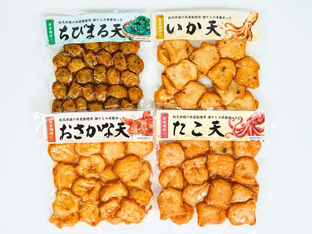 他の画像を見る お気に入り追加 岩下商店・頑張るふくしまのさつま揚げ 4種セット(たこ・いか・あおさ・おさかな) ¥ 3,580 税込 冷凍 送料無料 産地直送 日時指定不可 通常、3~7日で発送します。 (0)